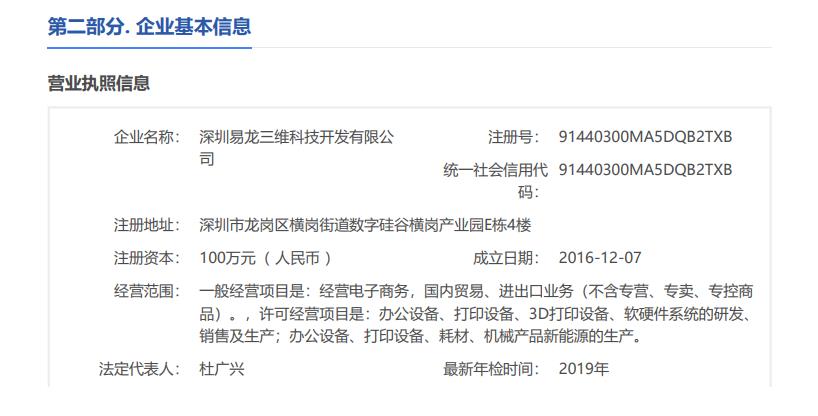深圳易龍三維科技開發(fā)有限公司于2016年12月在深圳正式注冊,是昆明博易創(chuàng)科技開發(fā)有限公司全資控股公司。2003—2006年前身是昆明博易創(chuàng)研究所,2006年正式注冊昆明博易創(chuàng)科技開發(fā)有限公司。2003—2006年開創(chuàng)制相機(jī)或叫萬能打印機(jī),后統(tǒng)一用詞萬能打印機(jī)、物體打印機(jī)。2009—2012年走上了快速發(fā)展階段,市場和名氣在國內(nèi)迅速提高,2011年日本商家主動到中國來代理我們的產(chǎn)品,三個月后風(fēng)靡全日本。2011年首家推出小型UV打印機(jī),以后進(jìn)入輝煌階段,在全國以昆明為總部的前提下陸續(xù)設(shè)置上海、深圳辦事處。